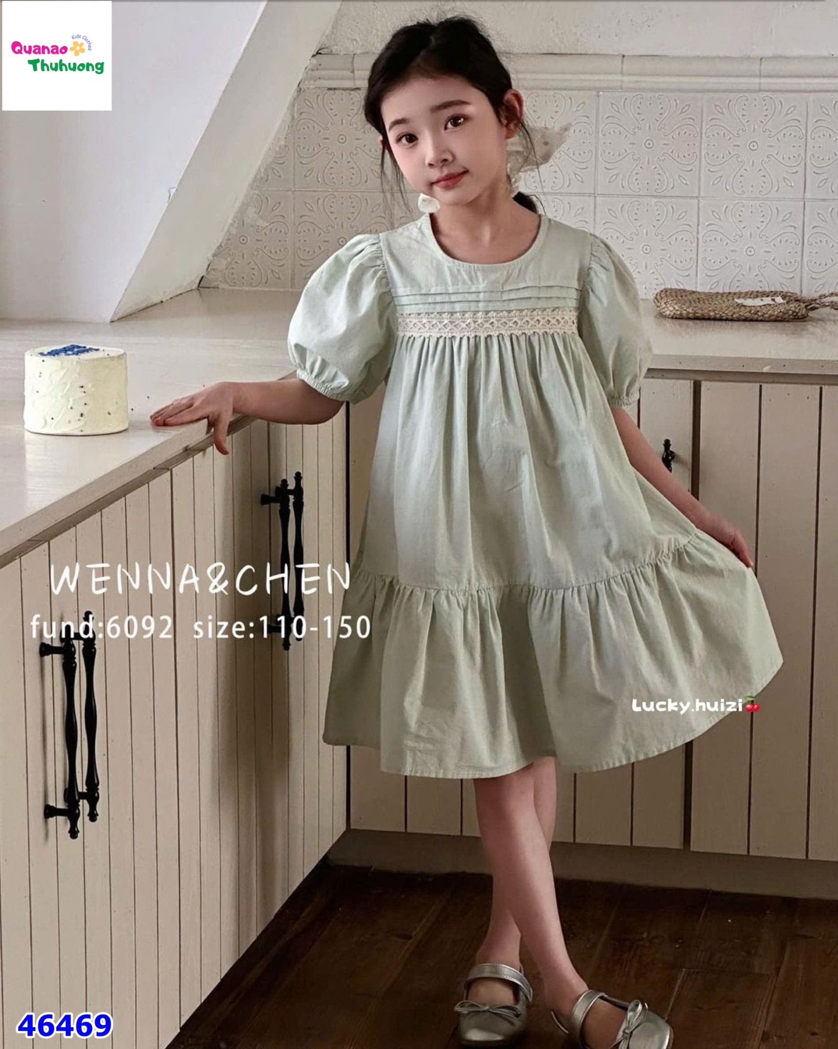 - Dáng đầm xòe nhẹ, tay con – mặc thoải mái, không gò bó, bé yêu tha hồ vận động.