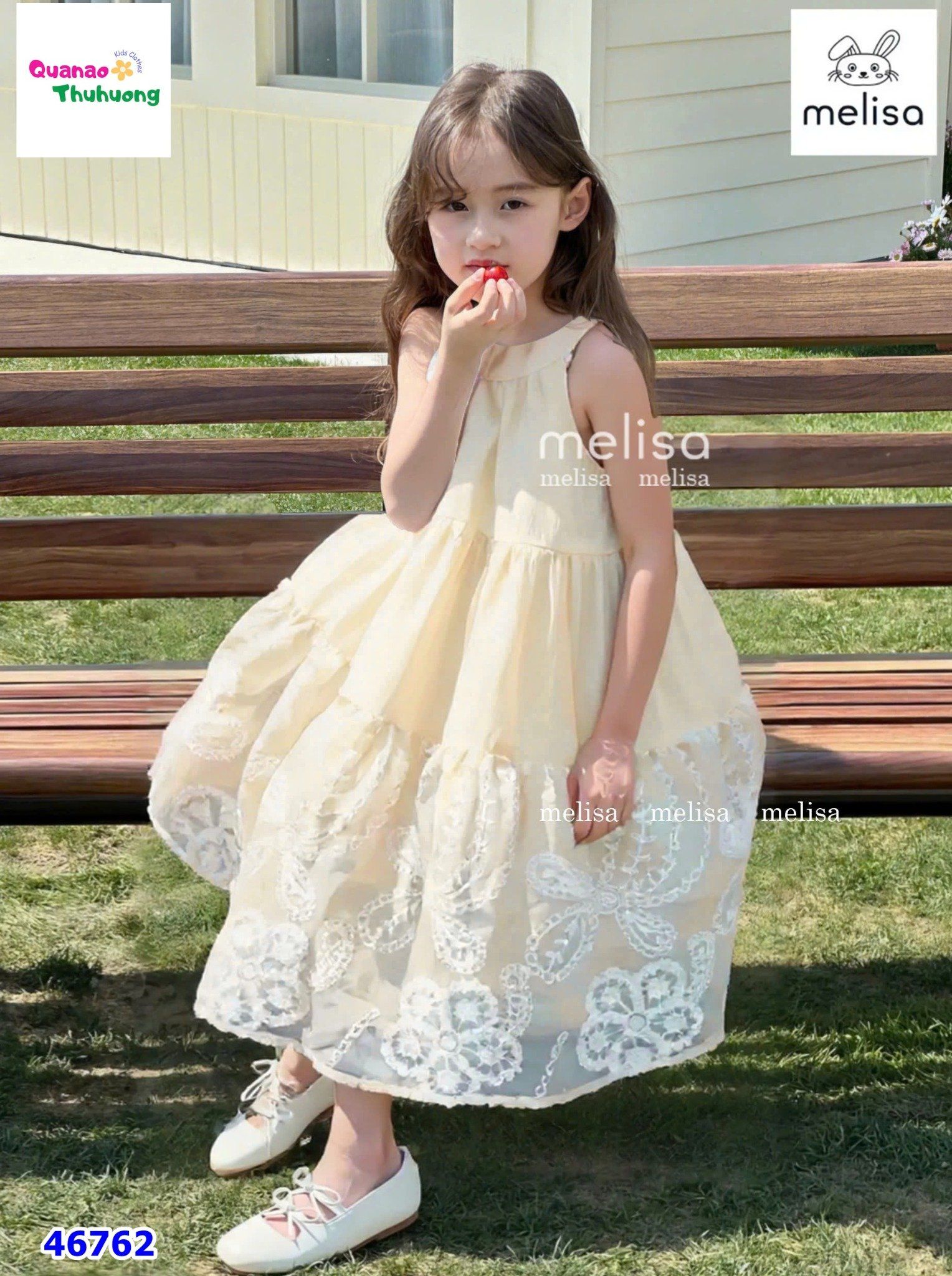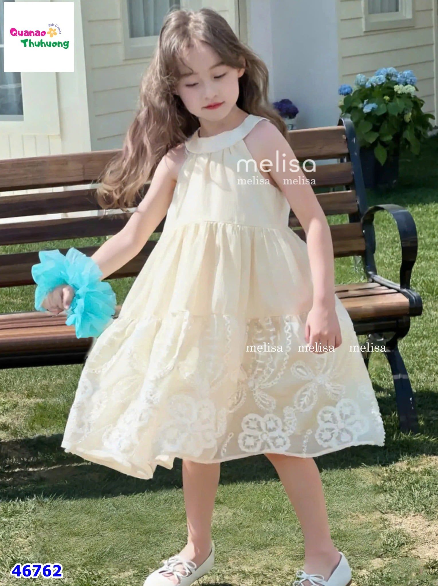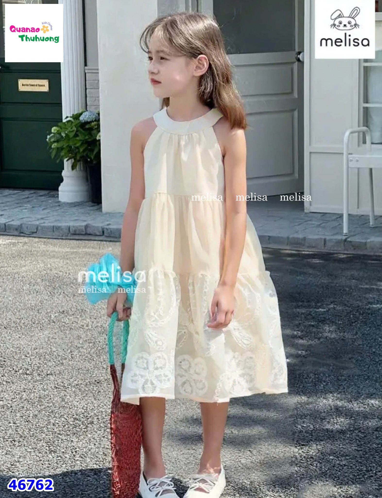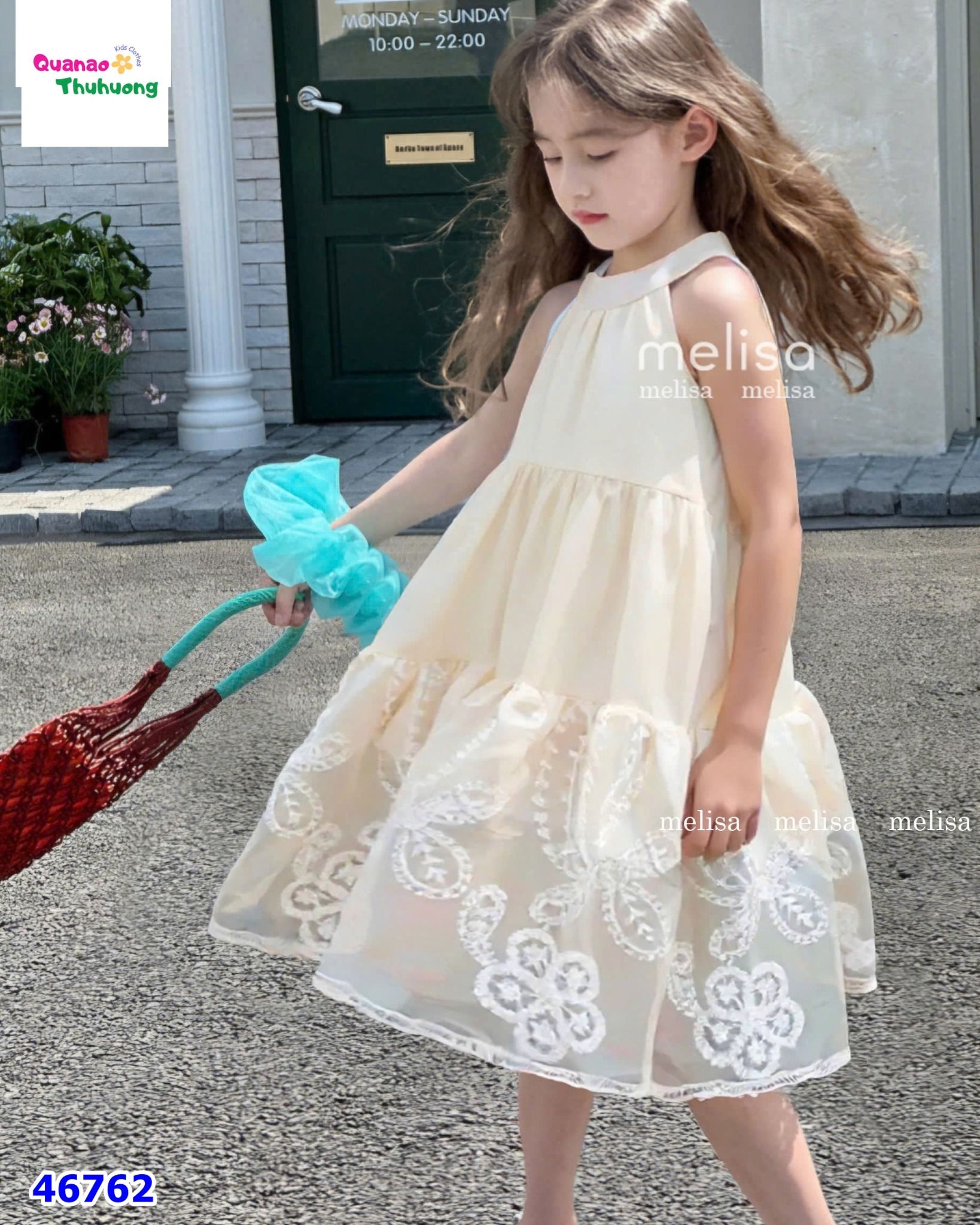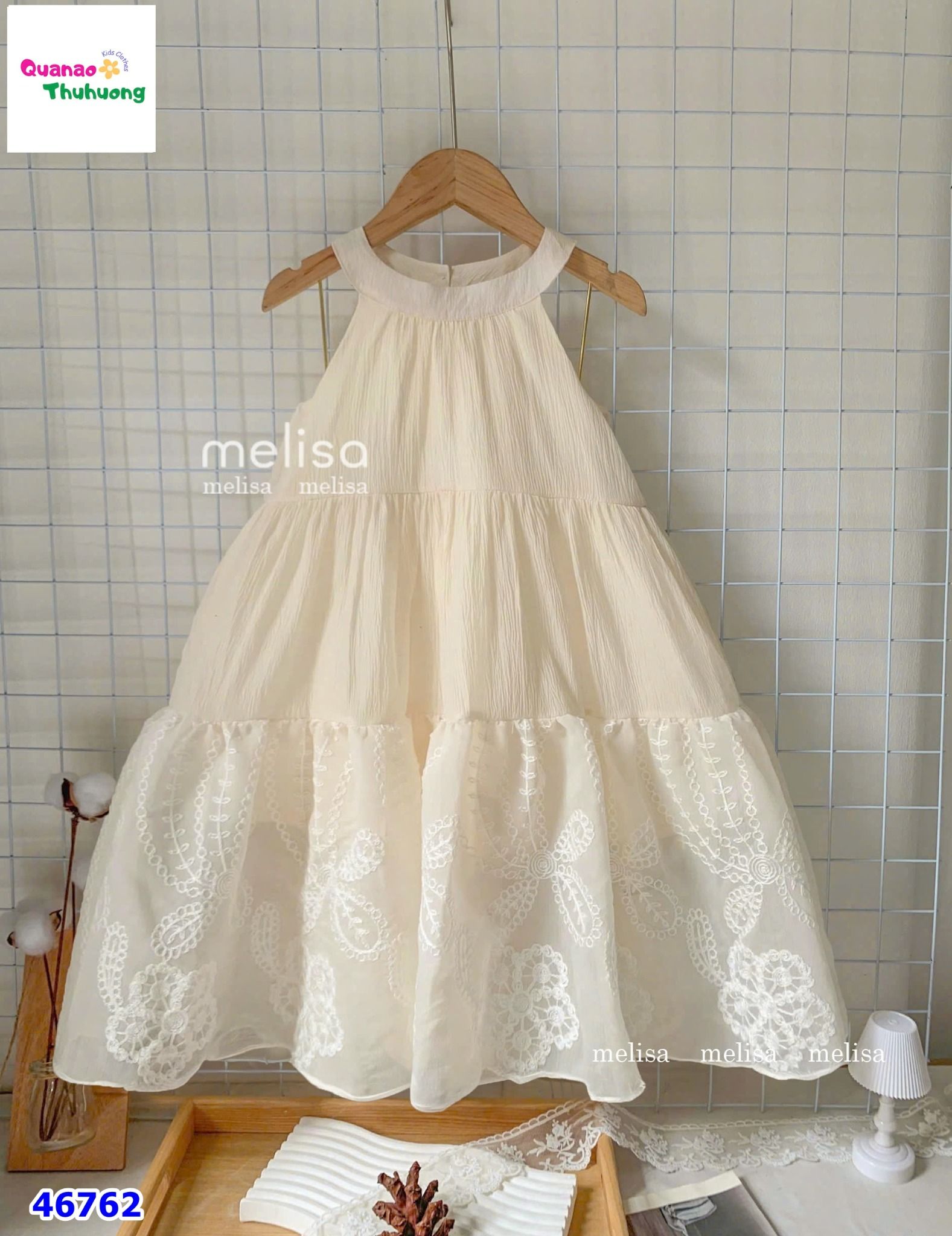 Đầm yếm MLS kem hoa nổi KHUYẾN MÃI - ƯU ĐÃI