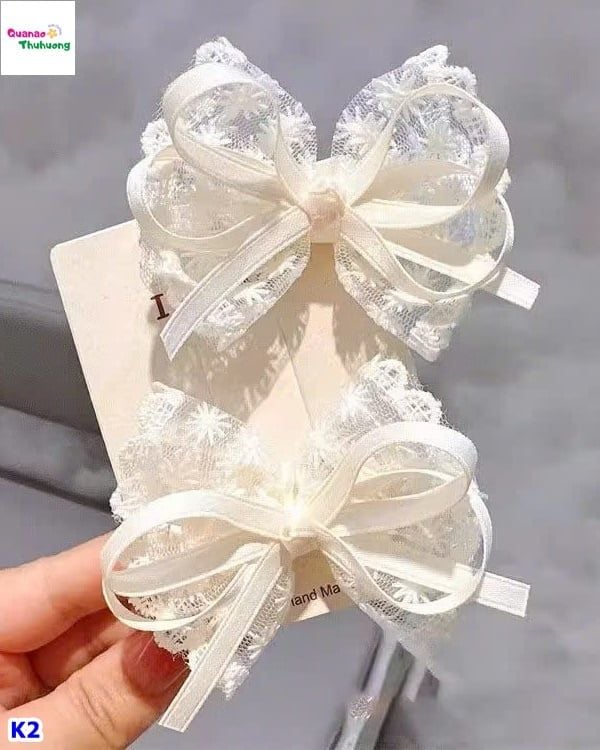 ✨ Kẹp tóc ren nơ trắng xinh xắn