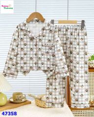 ✨ Họa tiết caro nâu phối hình gấu xinh xắn, vừa dễ thương vừa ấm áp.