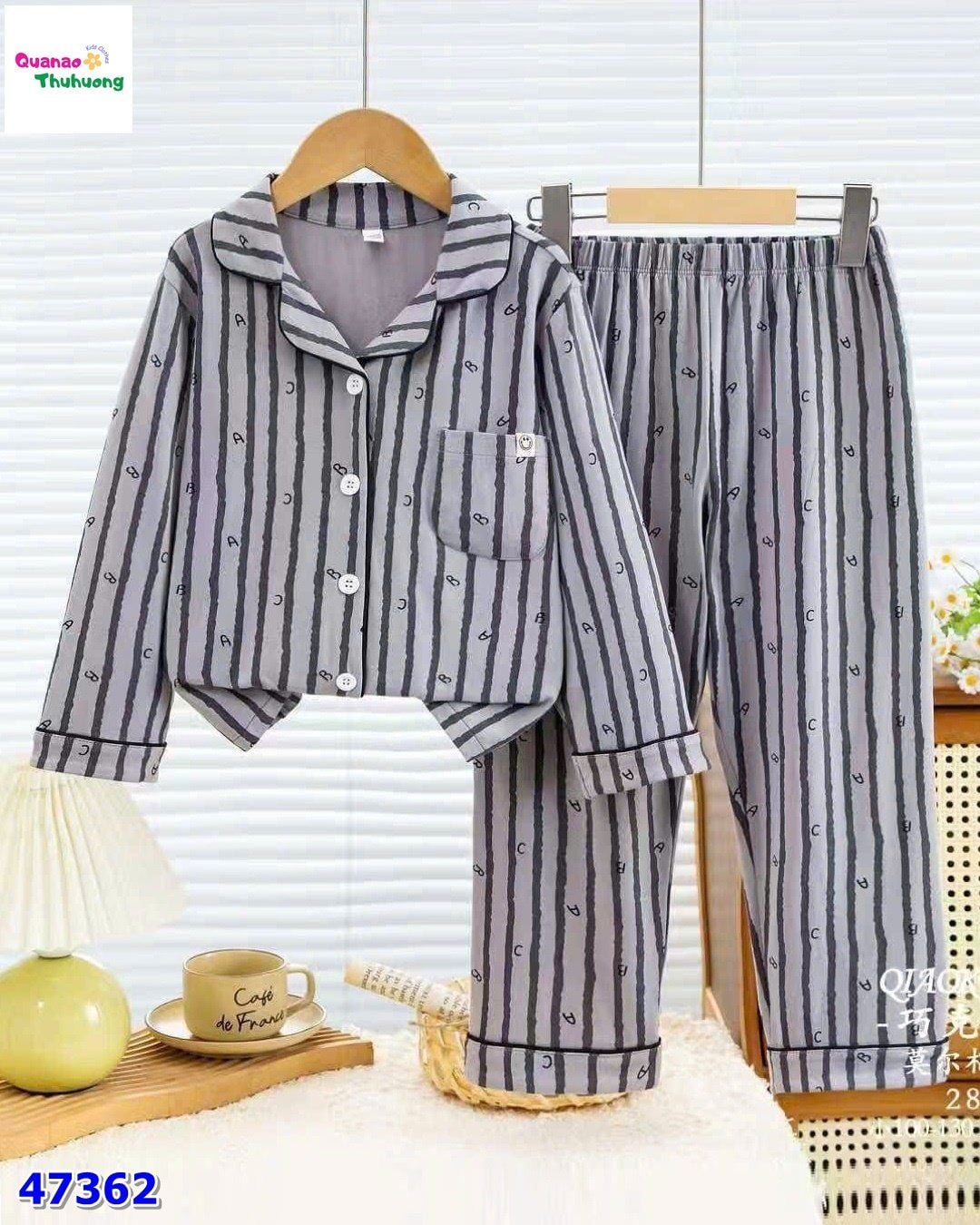 ⚡ Pyjama sọc xám ABC – Bộ đồ ngủ năng động và dễ thương cho bé 🤍