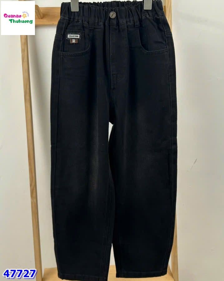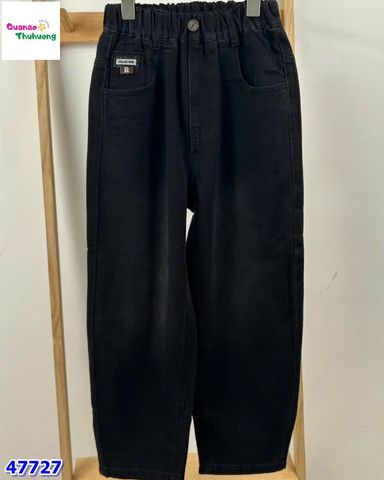 Quần jean dài màu đen cá tính, chất jean dày dặn, đứng form.