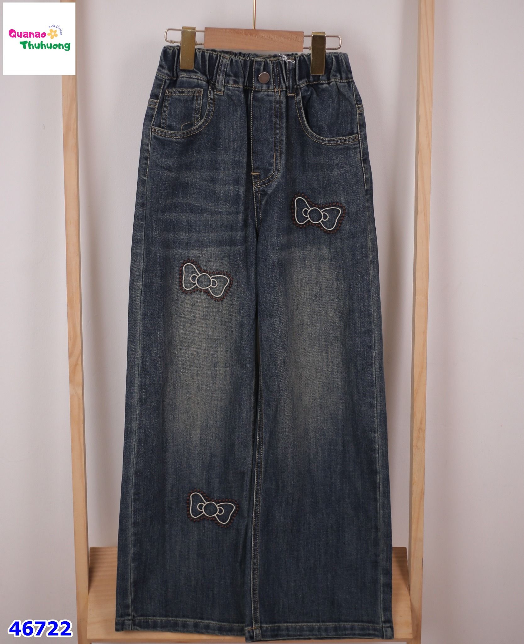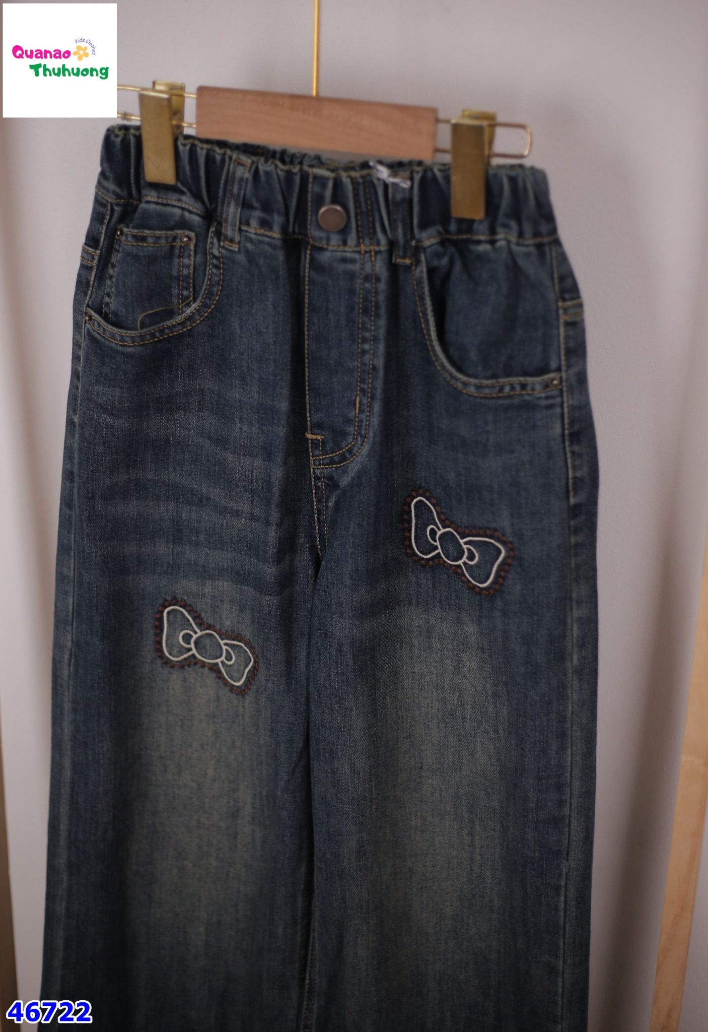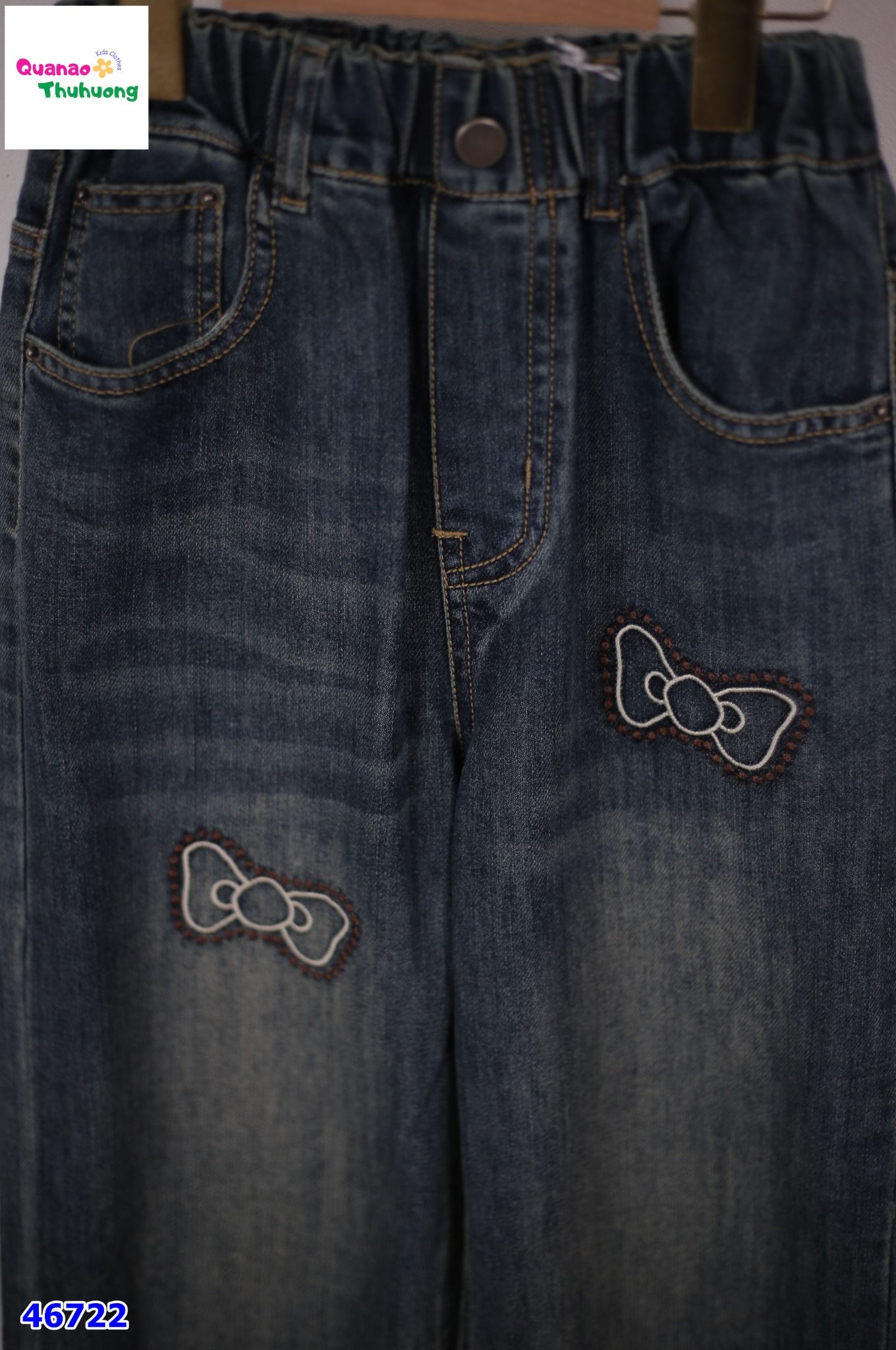 Quần Jean xanh thêu nơ cho bé yêu ^^