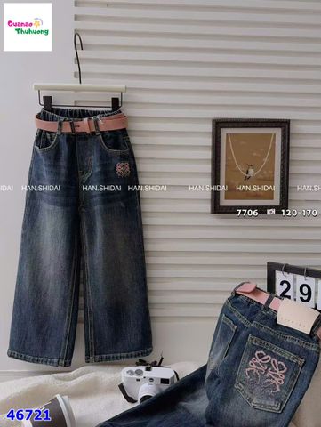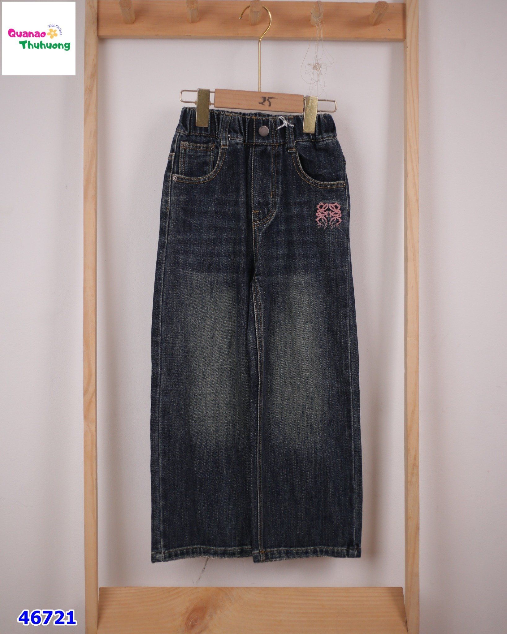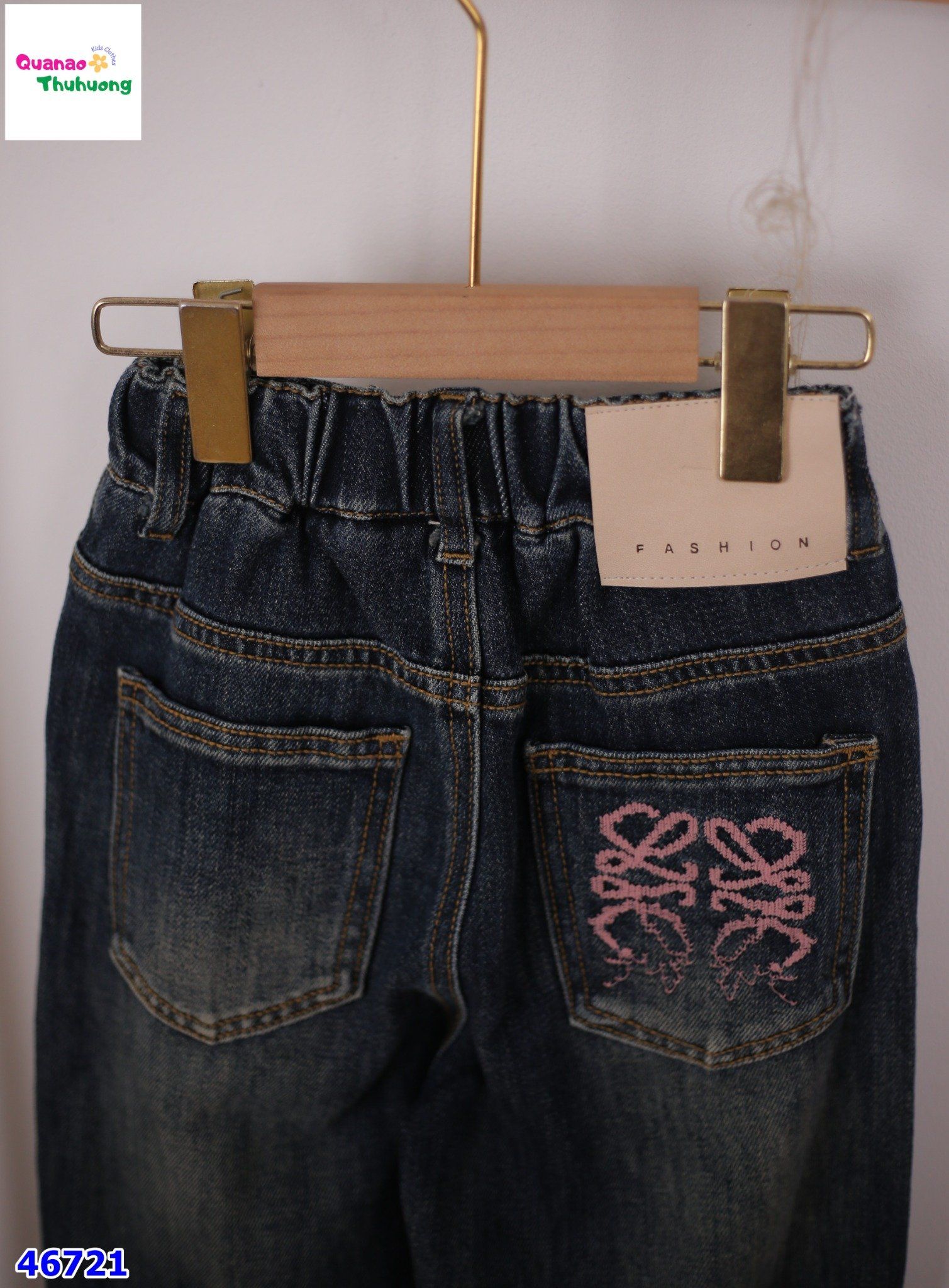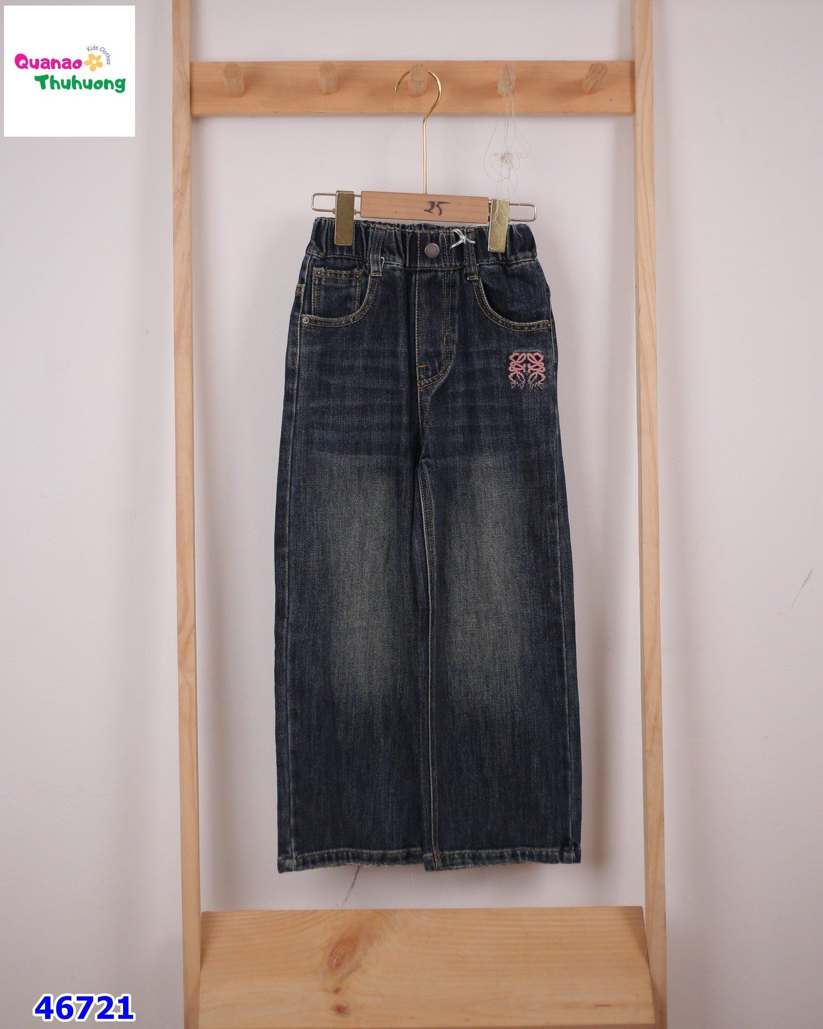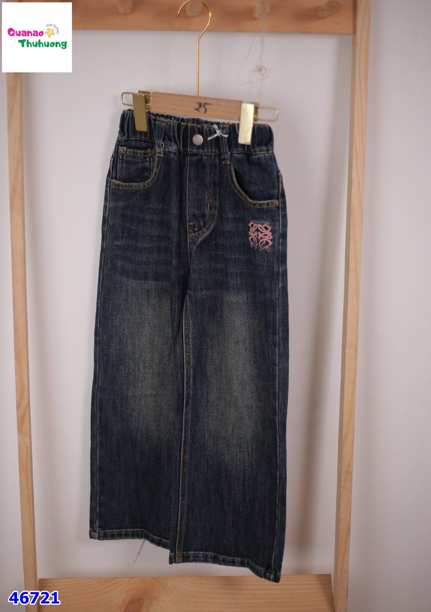 Quần Jean xanh thêu nơ hồng cho bé gái