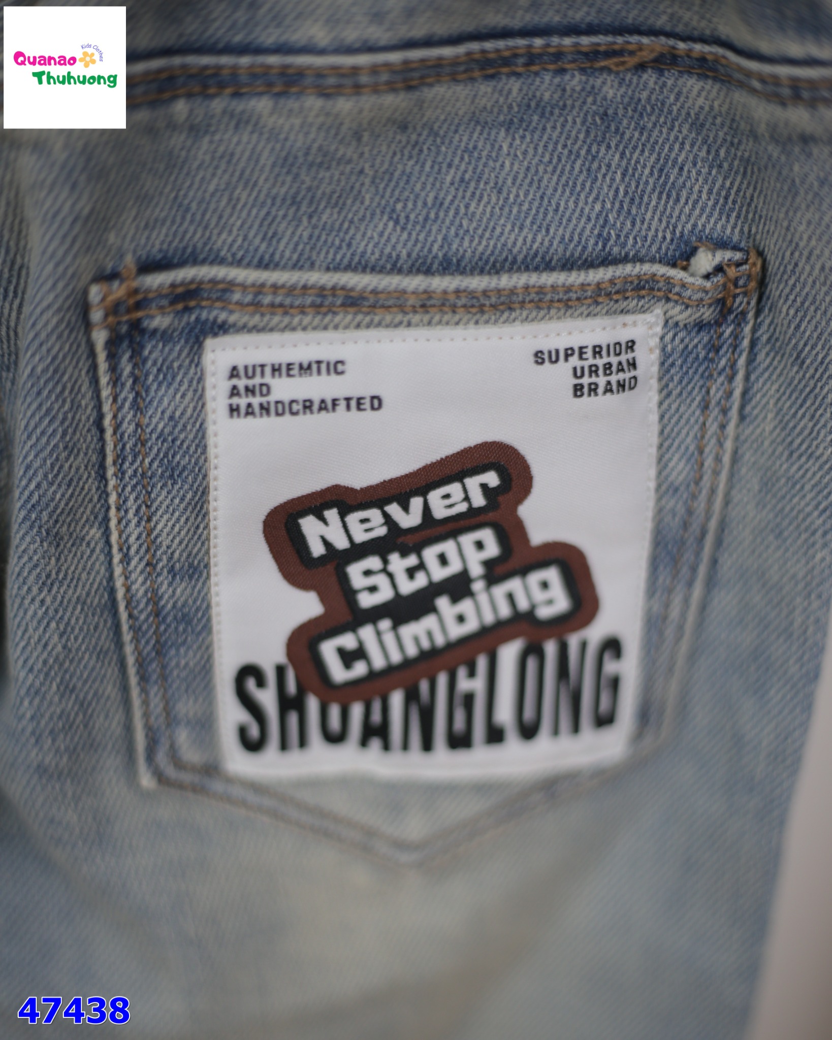 QUẦN JEAN XANH TÚI “NEVER STOP”