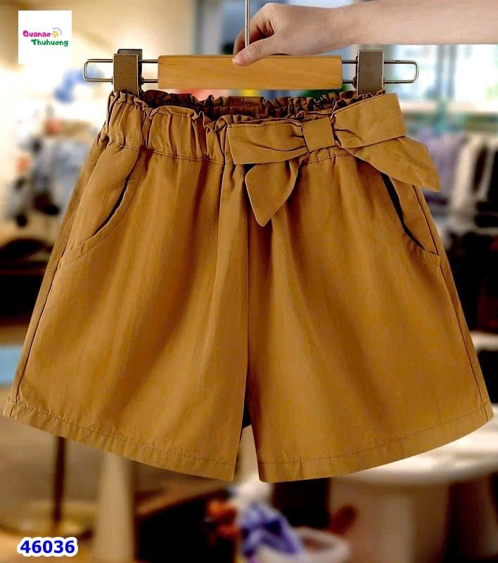 - Size 110, 120, 130, 140, 150- Quần short kiểu lưng thun mềm mại, đính nơ xinh xắn, rất năng động.