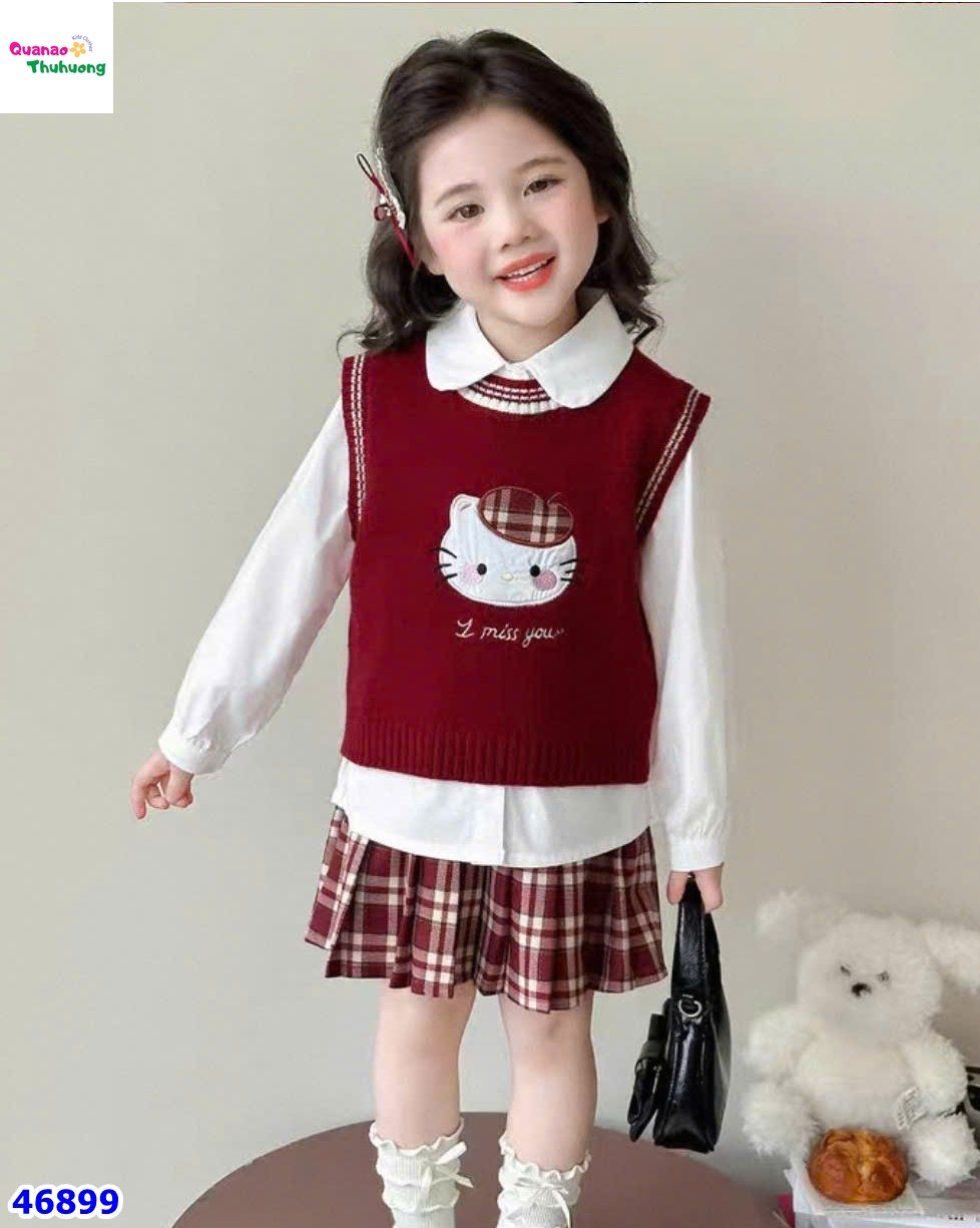 ✨ Gồm 3 món: chân váy, áo sơ mi và áo len ngoài