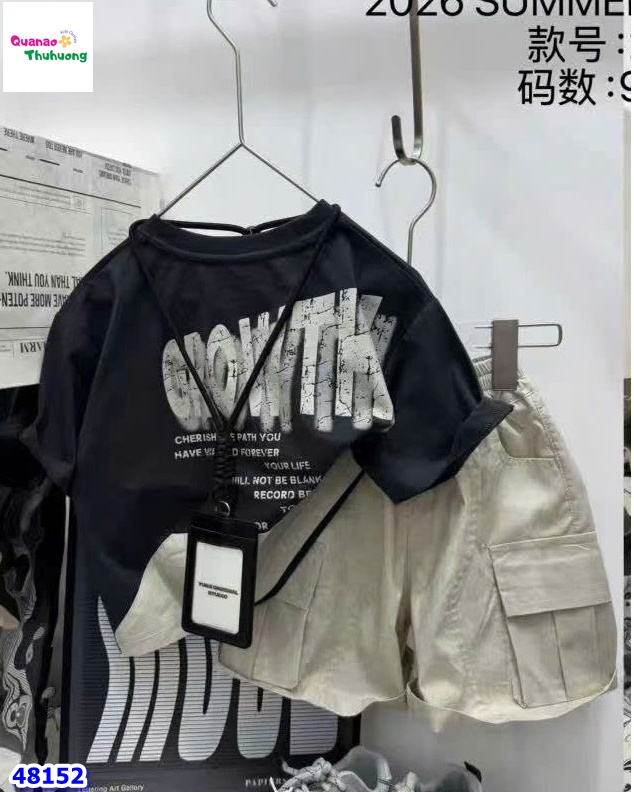 -Set đồ tone trung tính thời trang gồm áo thun đen in chữ Growth cá tính 👕