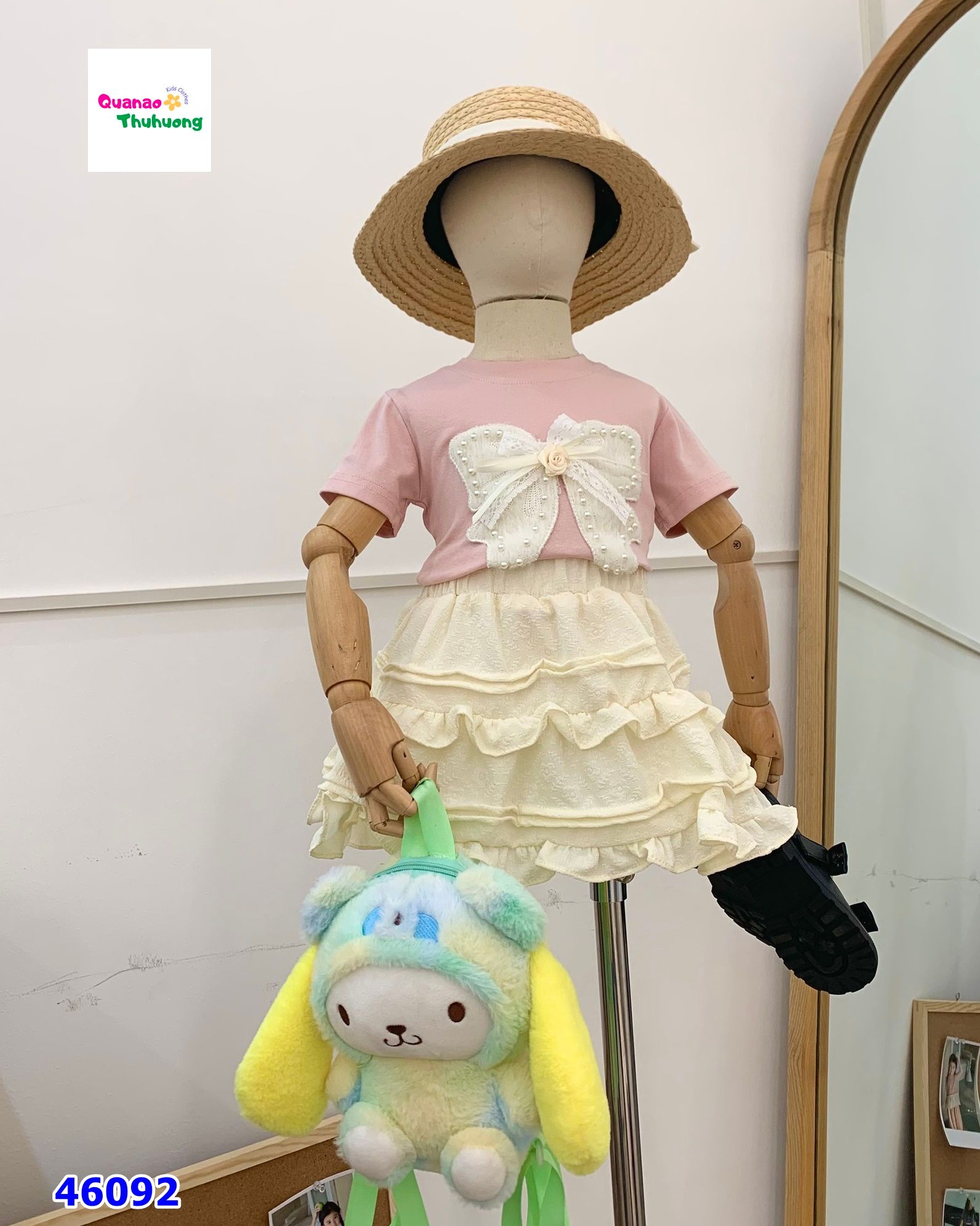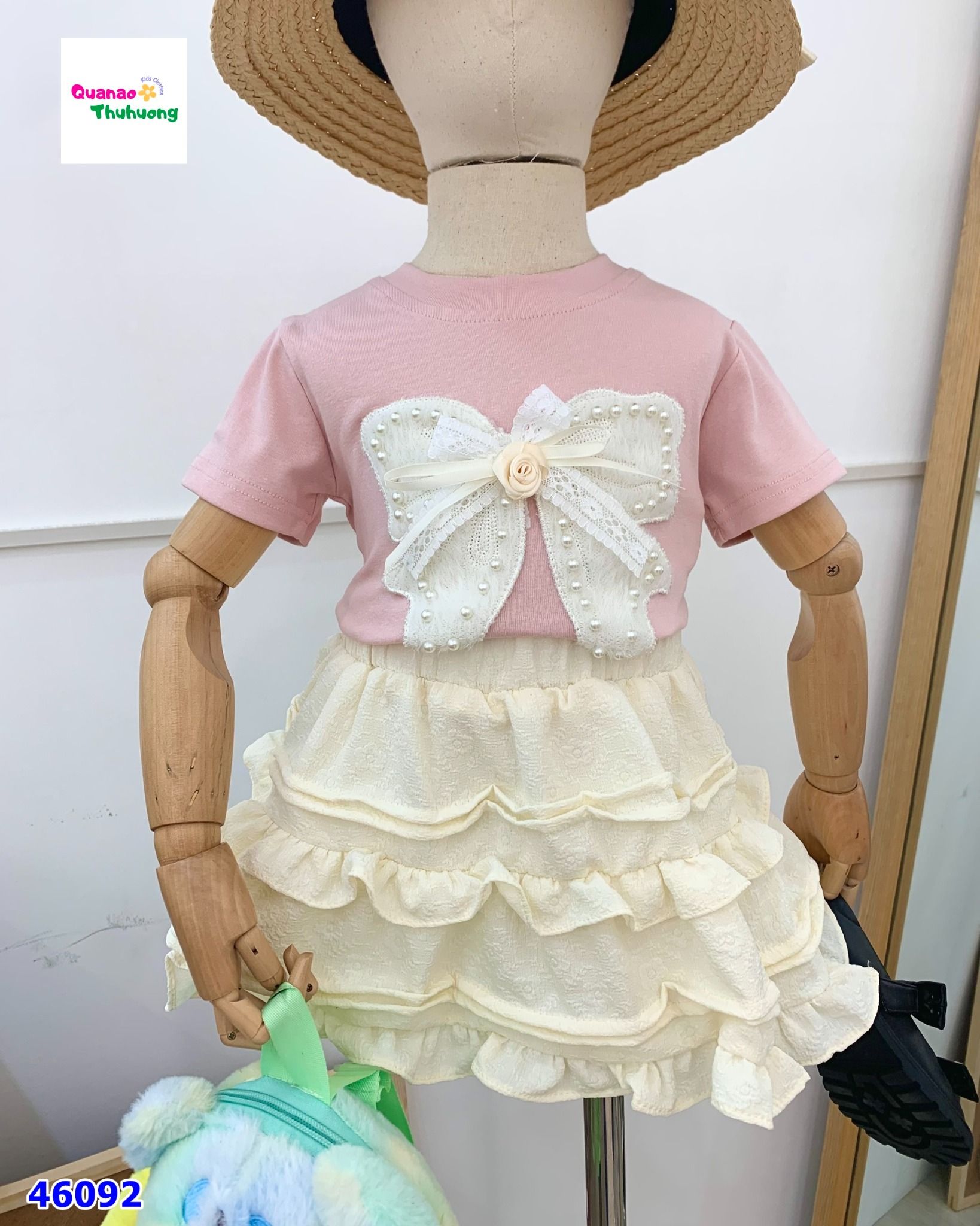 Set áo kem đính nơ, chân váy hồng KHUYẾN MÃI - ƯU ĐÃI