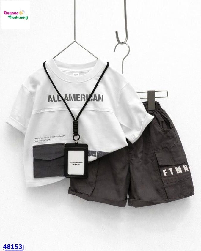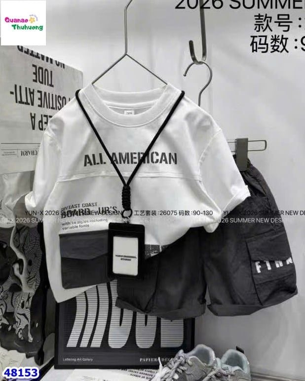 Set đồ năng động, trẻ trung với áo thun trắng in chữ All American nổi bật 👕