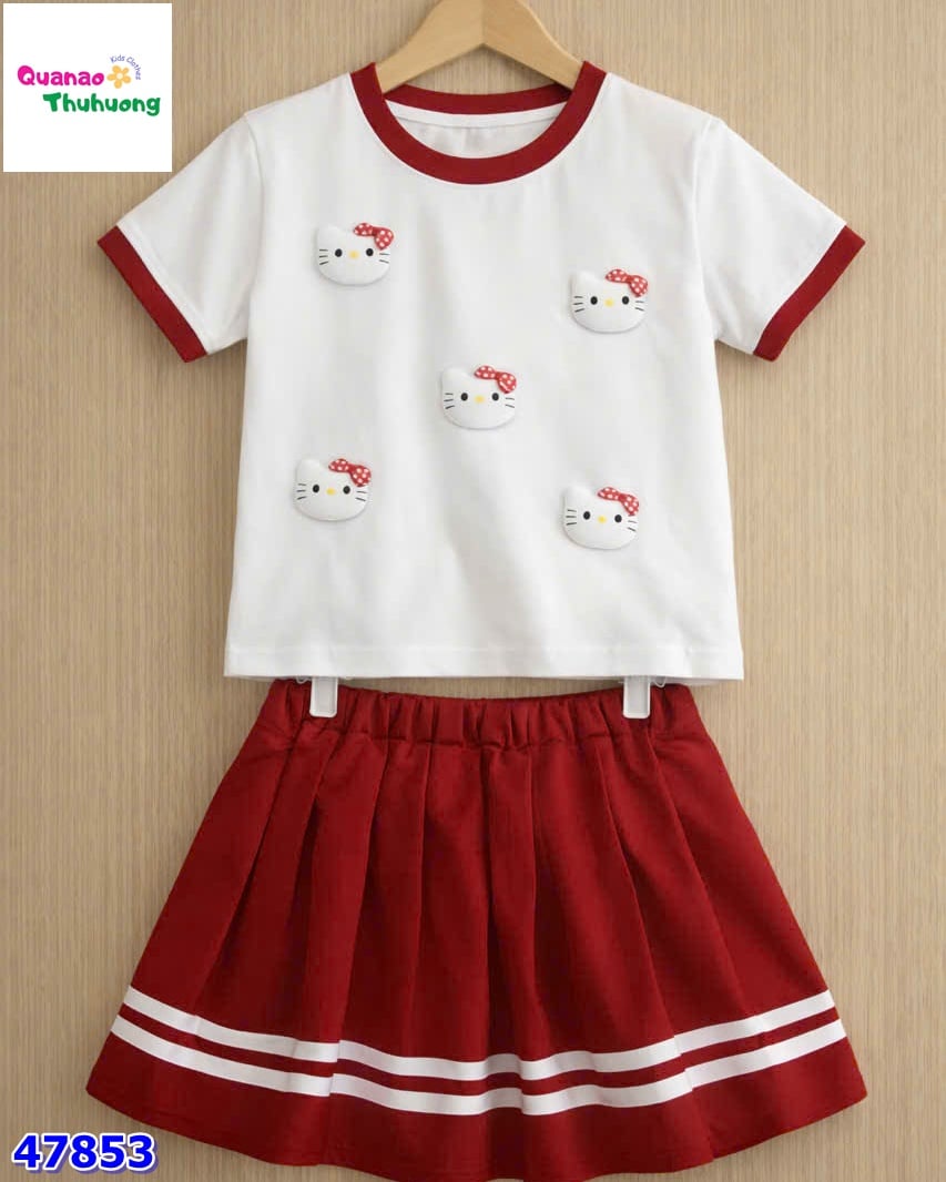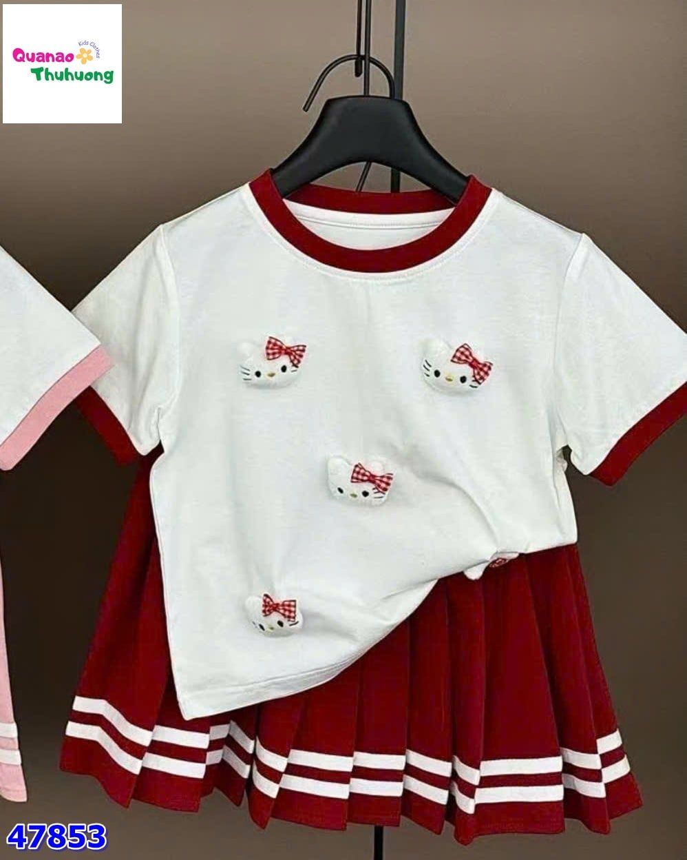 SET ÁO TRẮNG KITTY & CHÂN VÁY ĐỎ ❤️🎀