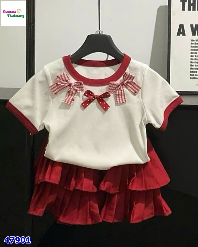 Set áo trắng nơ caro váy đỏ ❤️