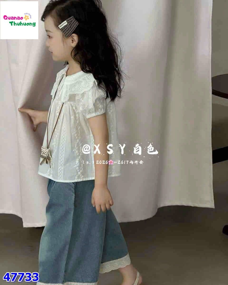 Set bộ áo trắng viền hoa, quần jean