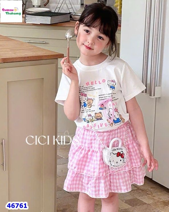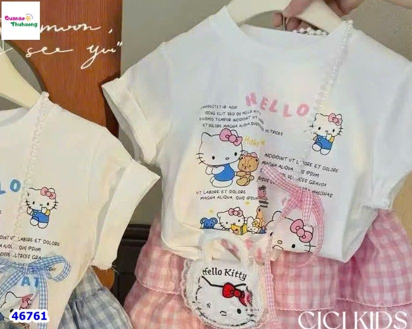 - Áo thun trắng in hình Kitty xinh xắn, chất cotton mềm mại, thoáng mát cho bé.