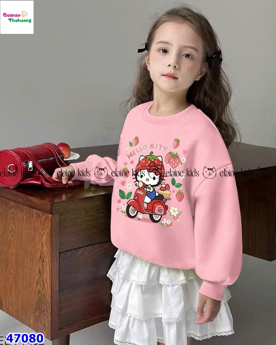 Set áo nỉ da cá hồng hình Hello Kitty mix chân váy trắng 3 tầng phối ren tầng tiểu thư