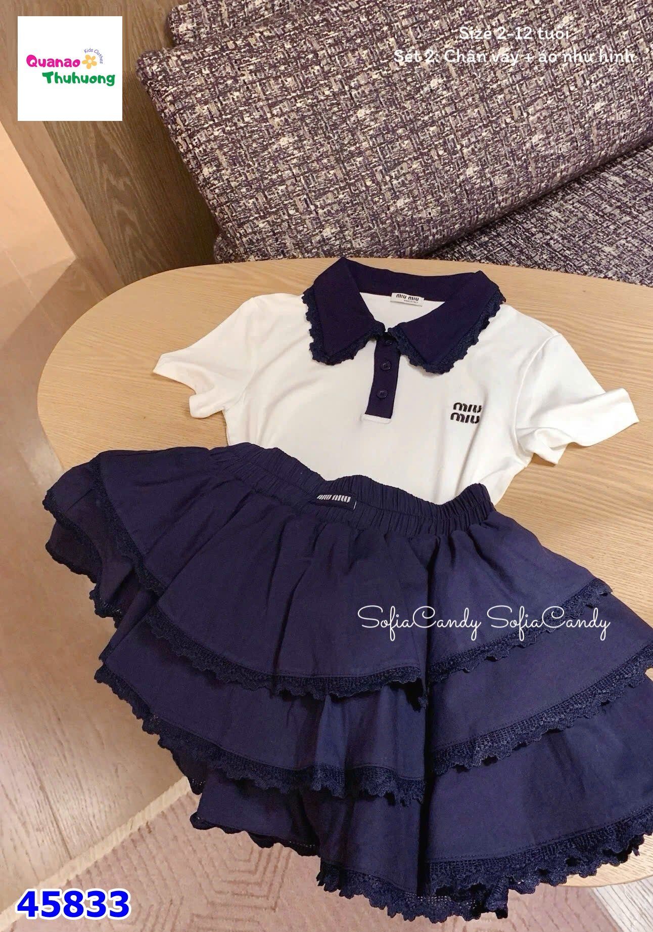 Set MiaKid Polo trắng Miumiu, chân váy tầng xanh KHUYẾN MÃI - ƯU ĐÃI