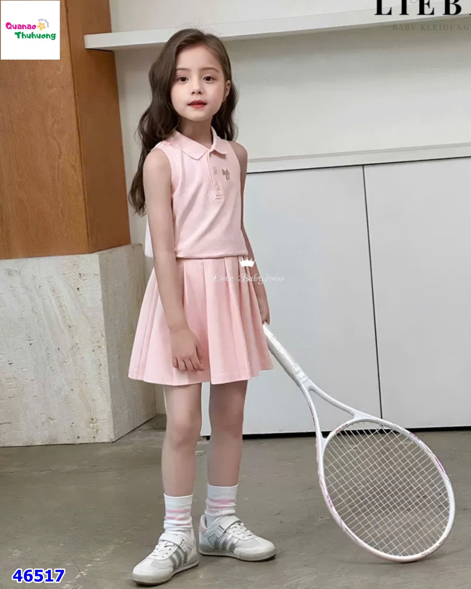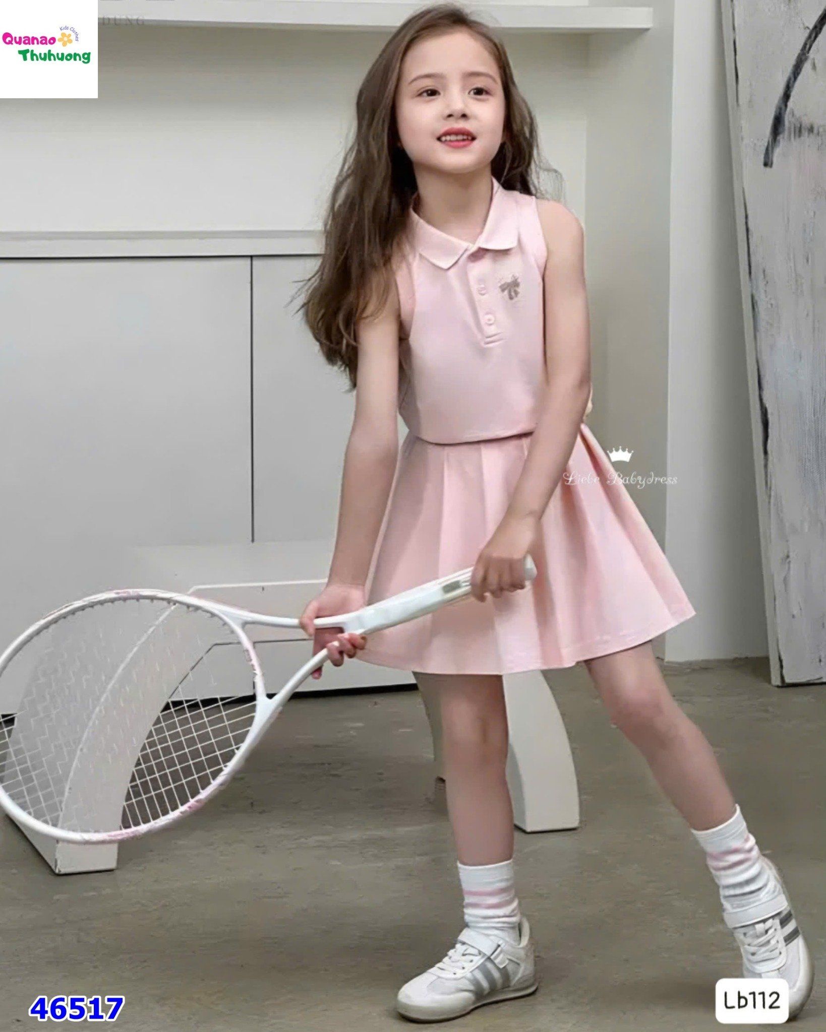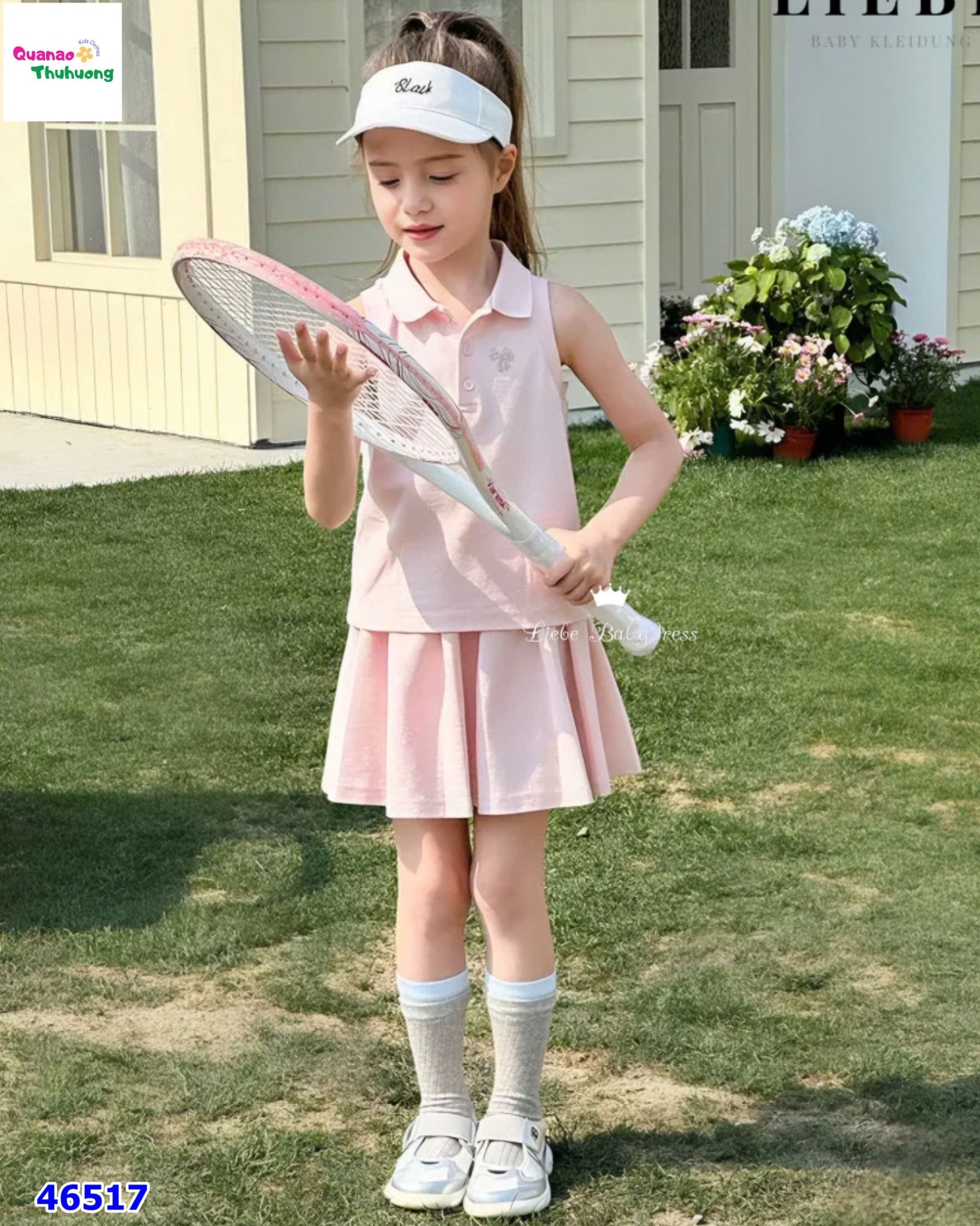 - Phối cùng váy tennis năng động, form chuẩn, bé mặc đi học hay đi chơi đều xinh.