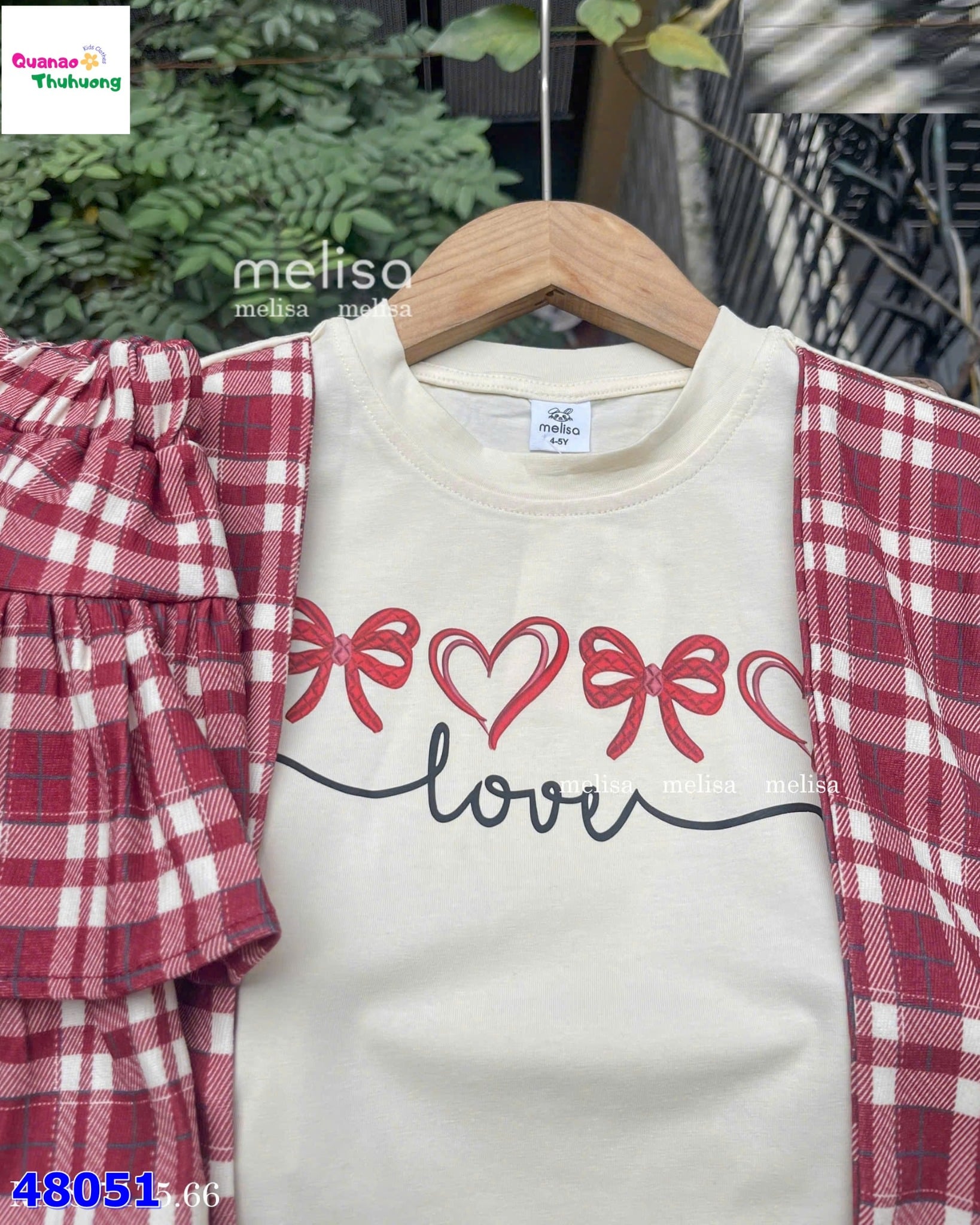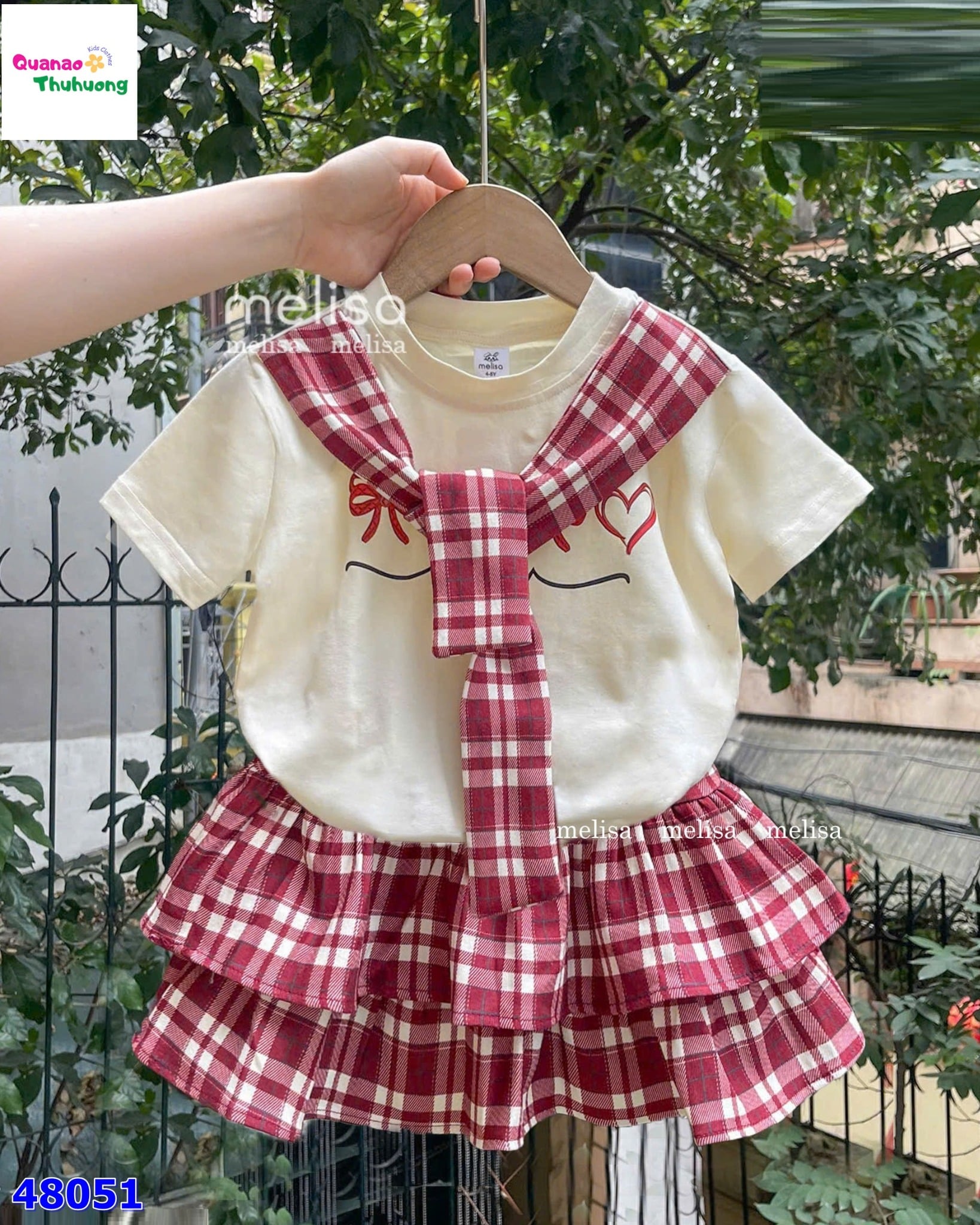 Set váy MLS trắng khăn choàng caro đỏ