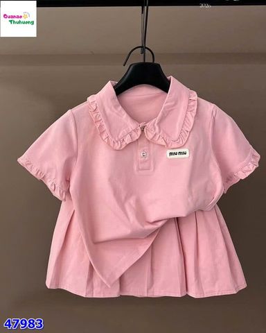 Set váy áo polo hồng MinMin ngọt ngào, dễ thương cho bé gái 💗