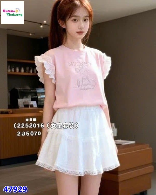 Set váy DDH áo hồng Mickey dễ thương, năng động cho bé 🎀