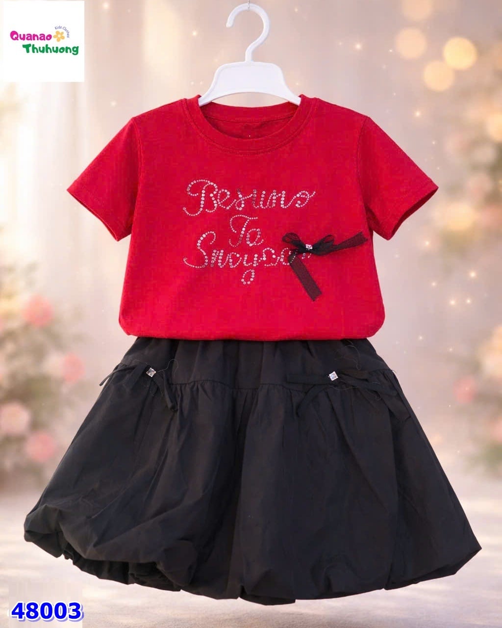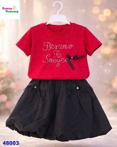 SET VÁY ĐEN, ÁO ĐỎ THÊU NƠ 🎀