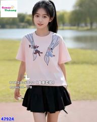 Set váy DHH áo trắng in khăn xanh thanh lịch, nhẹ nhàng cho bé 💙