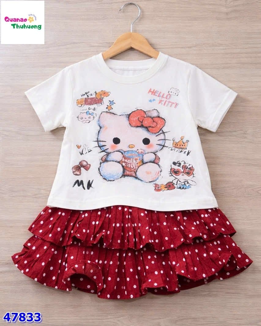SET VÁY ĐỎ PHỐI ÁO KEM HELLO KITTY 🎀