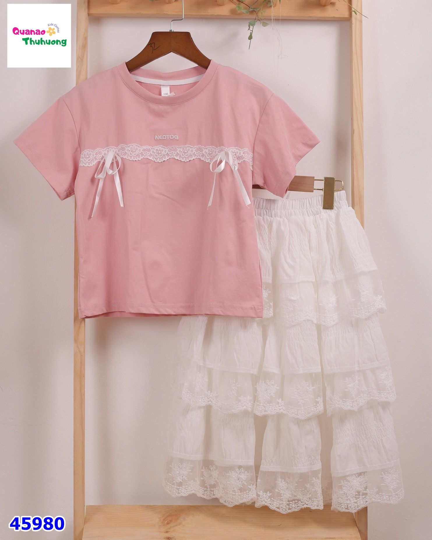 - Chân váy thô viền ren tầng điệu đà bé nhìn mê tít . Bé mặc đi học đi chơi đều đẹp lắm ạ