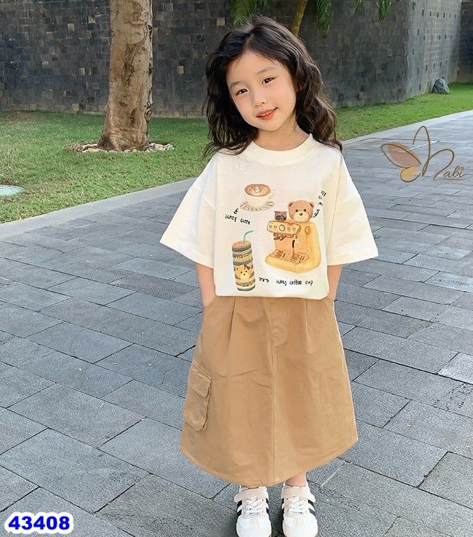 -Áo thun Cotton 4c +Vay kaki Cotton vải Hàn mềm xịn xò .