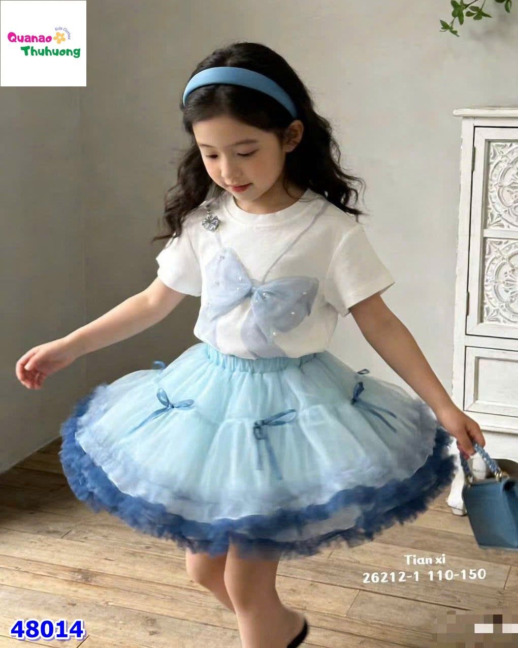 SET VÁY TUTU XANH, ÁO TRẮNG NƠ 🎀