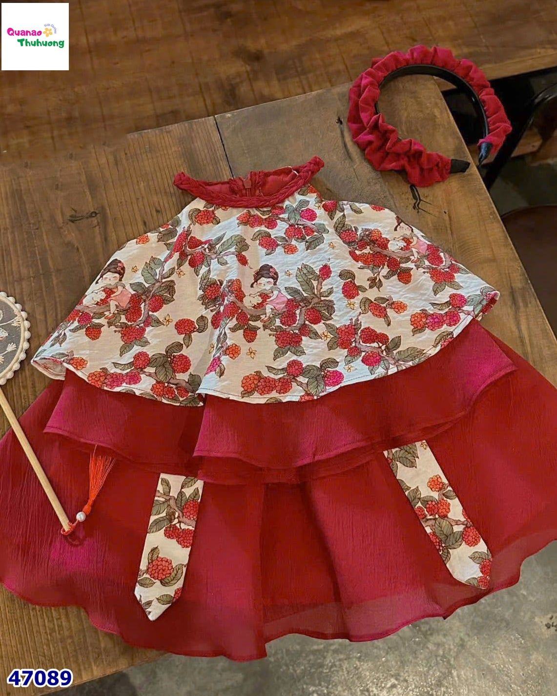 Set váy yếm đỏ Hằng Nga KHUYẾN MÃI - ƯU ĐÃI