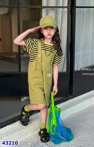 - Áo chất thun mix cùng yếm quần kaki mềm nhẹ, thoải mái.