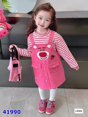 Set yếm Liebe hồng gấu dâu & áo tay dài - size 2-3y KHUYẾN MÃI - ƯU ĐÃI