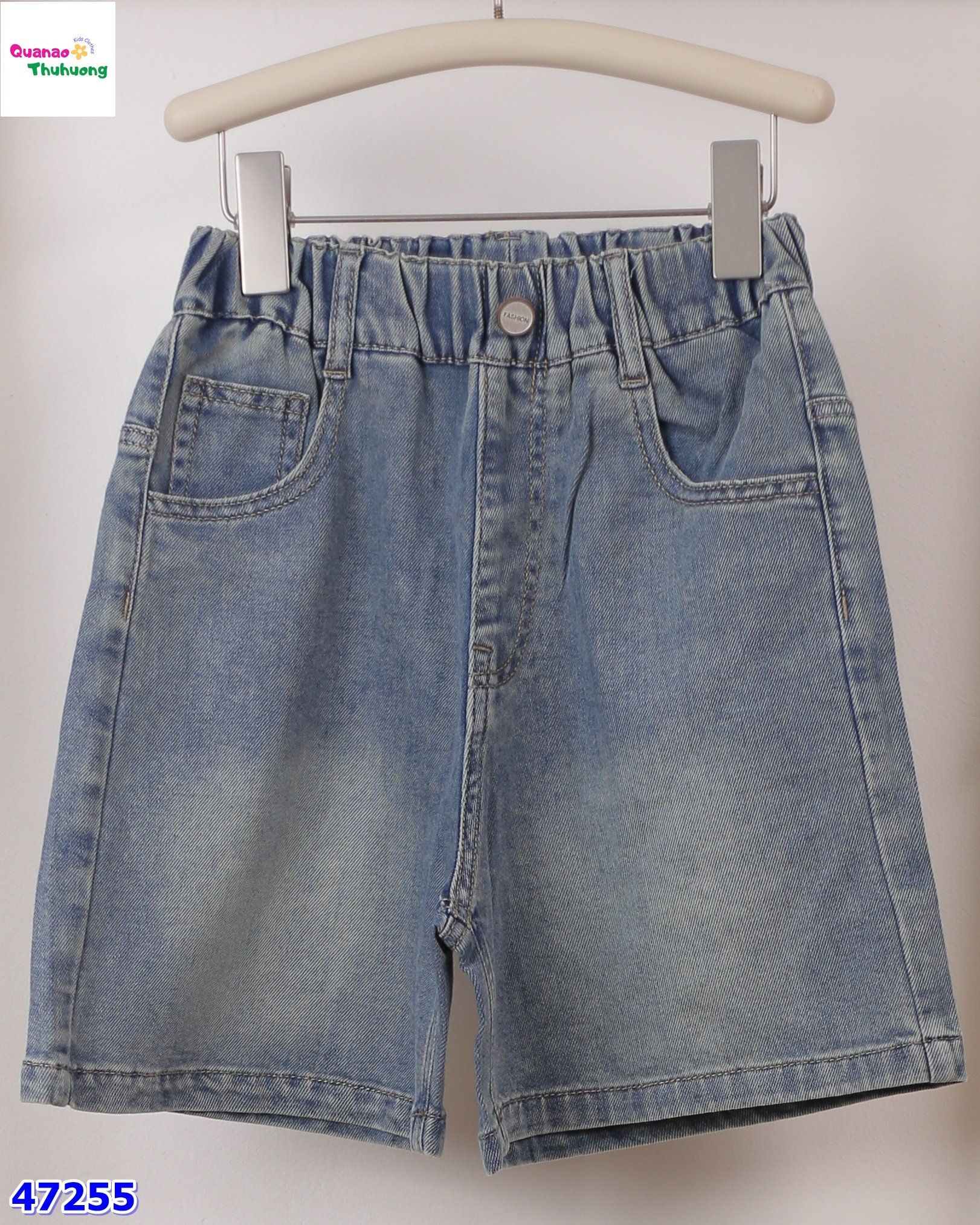 Chất jean mềm, dày dặn, form đứng đẹp, co giãn nhẹ giúp bé vận động thoải mái.
